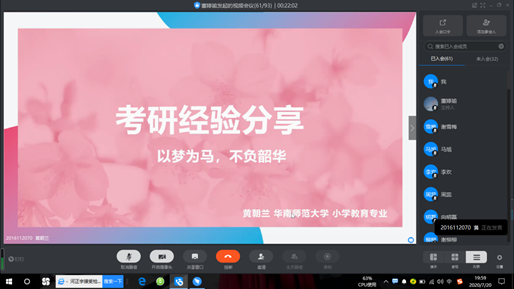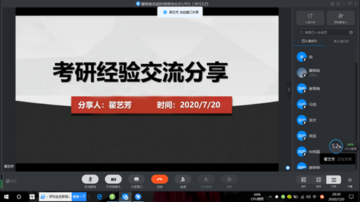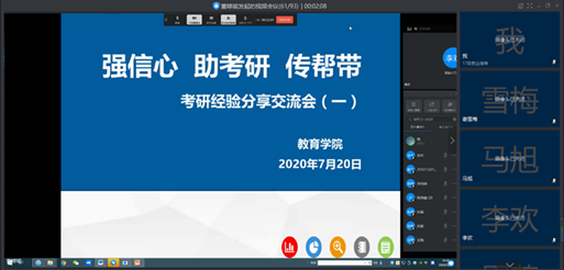 为帮助备考2021年研究生考试的员工更好地了解考研形势,明确考研规划,调整复习方法,减轻心理压力,营造良好的考研氛围,beats3657月20日通过钉钉软件举办第一期考研经验分享交流会,由beats3652017届毕业生李月星、2018届毕业生翟艺芳、2018届毕业生朱沈玮以及2020届毕业生黄朝兰主讲,员工党支部书记、辅导员董婷瑜主持,2017级80余人参会。