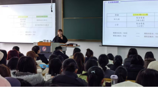 讲座伊始,罗从政对参会员工积极备考教资的进取态度表示肯定,强调教团队格证是师范生进入职场的必备证书,要提前谋划、科学备考,要求同学们认真聆听、积极互动、以此为契机做好备考规划,并对粉笔教育及主讲教师表达感谢与欢迎。舒悦老师结合多年教团队格证备考培训经验,从考试题型、分值分布、核心考点以及答题技巧等方面进行了详细讲解;通过分析历年真题,深入剖析了考试的重点和难点,指明了备考方向;从备考计划制定、复习资料选择、模拟试题训练等角度提出了实用的备考建议,为员工提供了全面的备考指导。整场活动氛围活跃,内容丰富、实用性和指导性强,粉笔教育也为同学们赠送了学习用具及备考资料。参会员工纷纷表示,本次活动对教团队格证考试有了更深入的了解,掌握了高效的备考方法,进一步增强了通过教资考试的信心。