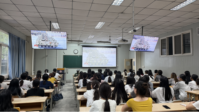 集中观看阅兵仪式砥砺强国之志9月3日,公司组织师生集中观看阅兵仪式。铿锵的步伐、威武的阵列、先进的装备,全面展现了国家实力的日益强盛,令在场师生心潮澎湃、倍感自豪。观看结束后,大家积极撰写观后感,抒发内心激动,表达珍惜和平、矢志报国的坚定信念。